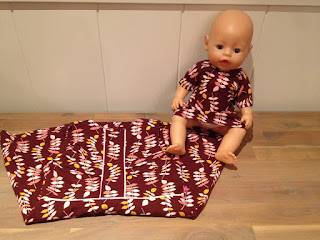 Om de rode randjes aan de armen en hals de maken, werkte ik gewoon af met rode biais en hield deze zichtbaar. Op een sneltempo zat het in elkaar. En prinses was er heel gelukkig mee, want die heeft het hele proces natuurlijk kunnen volgen en kon maar niet begrijpen waarom ze het nog niet mocht aandoen. Omdat het nog niet klaar is natuurlijk, maar leg dat maar eens uit! Maar dan op vorige maandag was het zo ver: